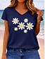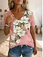 Femmes T-shirt Imprimé Fleuri Graphique Plantes ancien Élégant Classique Manche Courte Col en V Hauts Réguliers Quotidien Bleu blanc / bleu Rose Claire Été Printemps