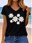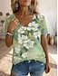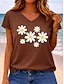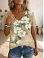 Femmes T-shirt Imprimé Graphique Plantes Lettre Élégant Classique Occasionnel Manche Courte Col en V Hauts Réguliers Occasionnel Quotidien Bleu Vert avec beige Noir Marron Kaki Été Printemps