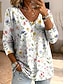 Femmes T-shirt Imprimé Fleuri Graphique Plantes ancien Élégant Classique manche longue Col en V Hauts Réguliers Quotidien Week-end Bleu Noir Rouge Vert Été Printemps Automne Hiver