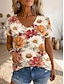 Femmes T-shirt Imprimé Fleuri Graphique Plantes ancien Élégant Occasionnel Manche Courte Col en V Hauts Réguliers Occasionnel Quotidien Week-end Rouille rouge Vert foncé Bleu Poudré Vert Gris Ét