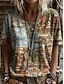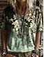 Femmes T-shirt Imprimé Fleuri Graphique Plantes ancien Élégant Classique manche longue Col en V Hauts Réguliers Quotidien Kaki Printemps Automne