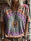 Femmes T-shirt Imprimé Fleuri Graphique Géométrique ancien Élégant Occasionnel Manche Courte Col ras du cou Hauts Longs Occasionnel Quotidien Week-end Bleu Rose Claire Violet Claire Été Printemps