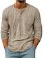 Homme T-shirt gaufré T-shirt Henley gaufré manche longue Col montant Hiver Automne Toutes saisons Couleur Unie Mode Basique Occasionnel Poches Faux deux pièces Rue Occasionnel Sports Noir bleu marine