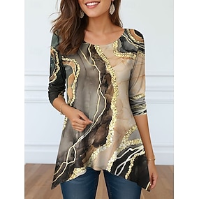 Tunique femme graphique abstrait élégante vintage mode à manches longues col rond regular tops impression quotidienne week-end bleu violet or vert printemps automne hiver préautomne