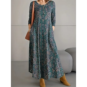 Femmes Robe maxi Robe trapèze Robe d'été Vacances Occasionnel Quotidien Coupe régulière Graphique Géométrique manche longue Col ras du cou Vert foncé Noir Blanche Marron Printemps Automne Hiver