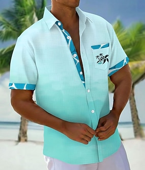 Homme Dégradé de Couleur Tortue Créatures de la mer Chemise Chemises hawaïennes Chemise Aloha Manche Courte Hawaïen Vacances Fête Été Col Rabattu Impression 3D Une poche avant Chemise en lin Bleu