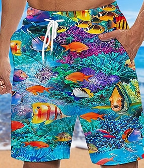 Homme Impressions Graphiques Poisson Maillots de bain Shorts de bain Shorts de Surf Taille Moyenne Hawaïen Boho Occasionnel Quotidien Fête Cordon de serrage avec doublure en mesh Taille Élastique