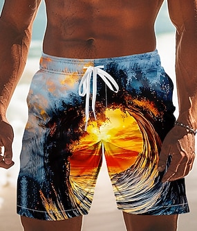Homme Illusion d'optique Océan Coucher du soleil Maillots de bain Shorts de bain Shorts de Surf Taille Moyenne Streetwear Hawaïen Vacances Poches Latérales doublure en maille Taille élastique avec