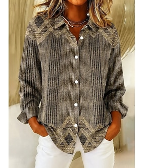 Femmes Chemise Chemisier Patchwork Boutons Imprimé Graphique Géométrique Abstrait ancien Élégant Moderne manche longue Col de chemise Hauts Réguliers Quotidien Bleu Marron Vert Kaki Automne Hiver