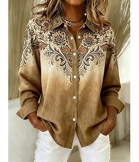 Femmes Chemise Chemisier Patchwork Boutons Imprimé Graphique Géométrique Abstrait ancien Élégant Moderne manche longue Col de chemise Hauts Réguliers Quotidien Bleu Marron Vert Kaki Automne Hiver