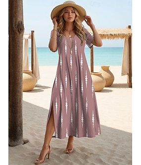 Robe maxi femme Robe décontractée Robe T-shirt Robe Tee Robe d'été Robe Bohémienne Date Régulier Géométrique Manches courtes Col rond Magenta Teal été