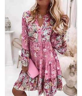 robe décontractée pour femme robe fleurie robe bohème imprimé cachemire floral froncé col en V manches évasées robe midi vacances quotidiennes manches longues été printemps