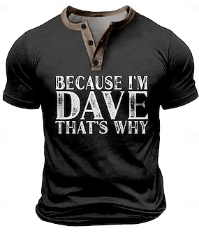 T-shirt pour hommes avec "Parce que je suis Dave c'est pourquoi" T-shirt graphique amusant design Lifestyle à manches courtes Henley