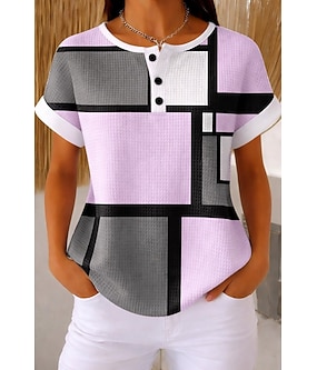 Hauts tricotés texturés Waffle pour femmes t-shirt à bloc de couleur graphique géométrique stylé classique à manches courtes col rond quotidien sport week-end vert clair violet clair bleu clair