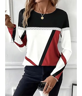 Femmes Sweats à capuche Boutons Graphique Géométrique Bloc de Couleur Mode Occasionnel Imprimé manche longue Col ras du cou Col rond Hauts Réguliers Occasionnel Rue Bleu Rose Claire Orange Vert Ét