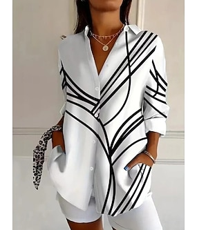 Chemise Femme Lin Comme Respirante Léger Boutonnée Tunique Col Manches Longues Élégante Mode Quotidienne Abstraite s Imprimé Hauts Classiques Décontractée Rose Bleu Violet Automne Hiver