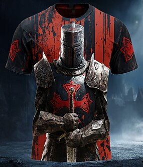 T-shirt homme armure médiévale des chevaliers templiers croix rouge épée gothique rétro guerrier impression intégrale taille régulière streetwear décontracté vêtements de designer