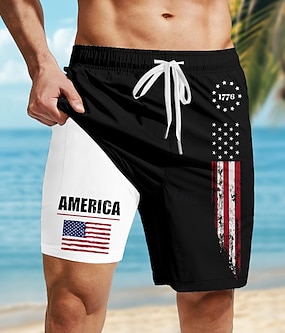 Jour de l'Indépendance Homme Drapeau Américain 4 juillet, 250e anniversaire des États-Unis Patriotique Short doublé Short de bain 2 en 1 Maillots de bain Taille Moyenne Fête Poches Latérales Avec