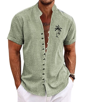 Homme Cocotier Plantes Tropicales Chemise hawaïenne Chemise Boutonnée Chemise Aloha Manche Courte Chemise Col montant Hawaïen Extérieur Vacances Rue Bleu Vert Kaki S M L