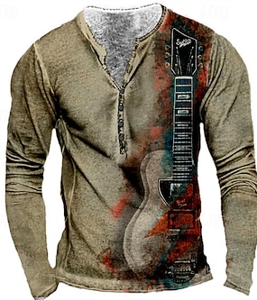 Homme T shirt Tee Chemise Henley Shirt Tee Design basique Classique Chemise Graphic Guitare manche longue Chemise Jaune Rouge Bleu Extérieur du quotidien Des sports Henley Printemps & Automne
