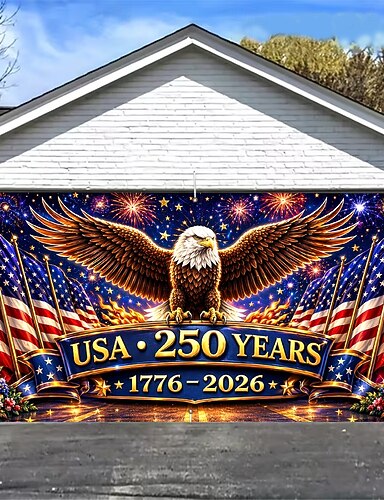 Décoration patriotique pour porte de garage commémorant le 250e anniversaire des États-Unis, idéale pour la fête de l'indépendance et les célébrations en extérieur. Parfaite pour les fêtes et les célébrations.