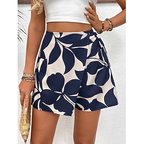Femmes Joggings Chinos jupe-short Vacances Streetwear Occasionnel Court Taille haute Fleuri Imprimé Confortable Doux Micro-Élastique Extérieur Vacances Rue bleu marine Été Printemps Automne Coupe