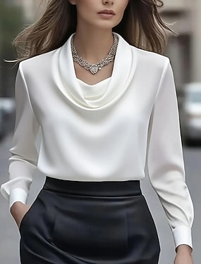 Femmes Chemise Elegant Habillé Haut en satin Froncé Couleur Unie Uni Élégant manche longue Asymétrique Hauts Réguliers Fête Sortir Noir Blanche Abricot Printemps Automne