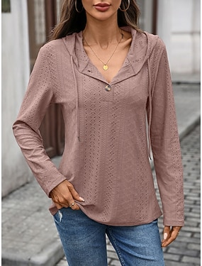 Femmes Chemise Chemise ajourée Haut à œillets Chemisier Œillet Uni ancien Élégant Classique manche longue À capuche Hauts Réguliers Occasionnel Quotidien Plage Noir Rose Claire bleu marine Vert foncé