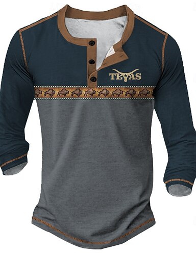 Homme Graphique Ethnique Chemise Henley T-shirt manche longue ancien Mode Designer Occasionnel Quotidien Extérieur Printemps & Automne Toutes saisons Vert Armée Marron foncé Gris foncé Henley T-shirt