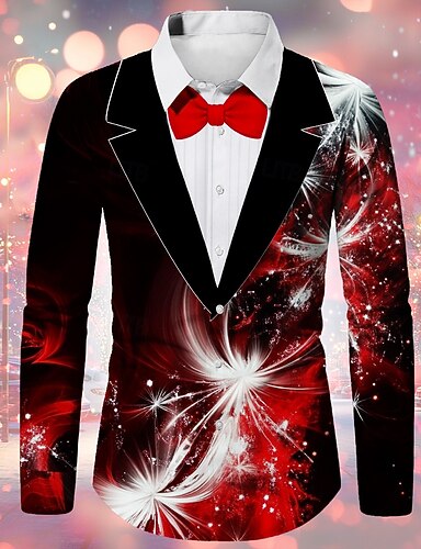 Chemise de costumes imprimée de fleurs pour hommes pour la Saint-Valentin chemise boutonnée à manches longues vintage rétro cadeau festival été automne chemises à col avec impression 3D noire