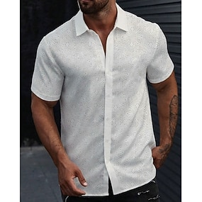 Homme Chemise Texture Chemise Décontractée Chemise Boutonnée Noir Blanche Kaki Café Manche Courte Géométrique Uni Col Rabattu Occasionnel Quotidien Évider Vêtement Tenue Élégant Mode Occasionnel