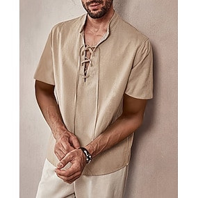 Homme Chemise Chemise d'été Chemise Décontractée Chemise de Plage Noir Abricot Manche Courte Uni Band Collar Vacances Hawaïen À lacets Vêtement Tenue Polyester Mode Occasionnel Confortable