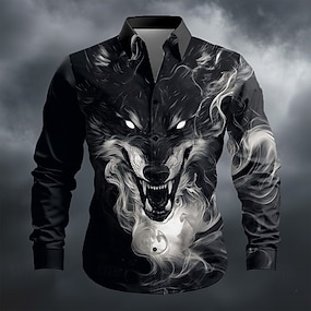 Homme Enfumé Animal Loup Chemise Chemise Boutonnée manche longue Vintage Rétro Extérieur Tenue Quotidienne Printemps Automne Col Rabattu Impression 3D chemises à col Noir Marron