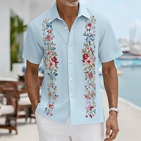 Homme Imprimé Floral Ethnique Fleurs Chemise Chemise Guayabera Chemise Boutonnée Manche Courte Vintage Rétro Quotidien Extérieur Vacances Été Printemps Col Rabattu Impression 3D Chemise en lin Bleu