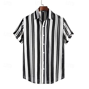 Homme Chemise Chemise d'été Chemise Décontractée Chemise de Plage Chemise Boutonnée Chemises à rayures Noir Manche Courte Rayures Col Rabattu Vacances Hawaïen Vêtement Tenue Polyester Mode