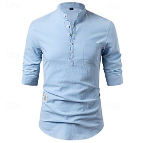 Homme Chemise Chemise en lin Chemise popover Chemise Décontractée Chemise en coton Uni Vacances Hawaïen Noir Blanche Abricot Gris Manche 3/4 Band Collar Été Printemps Vêtement Tenue Boutonné