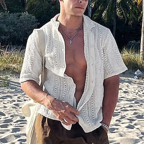 Homme Chemise Chemise Décontractée Chemise Boutonnée Noir Blanche Jaune Abricot Gris Manche Courte Uni Col Rabattu Occasionnel Quotidien Évider Vêtement Tenue Élégant Mode Occasionnel Chaussures de