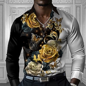 Homme Floral Chemise boutonnée Chemise de créateur manche longue Mode Décontractée Vacances Fête / Soirée Printemps Automne Col rabattu Boutonner Noir