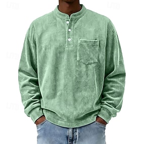 Homme Chemise en velours côtelé Chemise Henley T-shirt manche longue Henley Automne & Hiver Toutes saisons Couleur Unie Uni Mode Designer Occasionnel Boutons Chaud Occasionnel Quotidien Extérieur