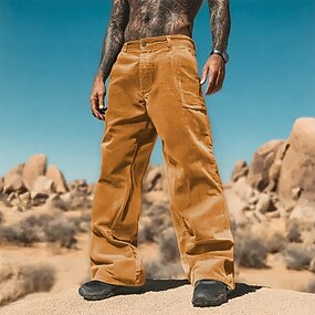 Homme Pantalons Pantalon en velours côtelé Pantalons Amples Pantalon de survêtement droit Cordon de serrage Taille Élastique Couleur Unie Confort Longueur complète Extérieur Quotidien Vêtements de rue