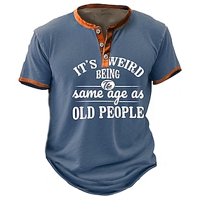 T-shirt Henley graphique humoristique pour homme avec le slogan 'C'est étrange d'avoir le même âge que les personnes âgées'