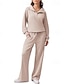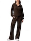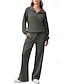 Femmes Mode Quotidien Ensembles de Pantalons manche longue Col en V Couleur Unie Cordon de serrage Tenue quotidienne Gris foncé Noir Vin Automne & Hiver Coupe régulière