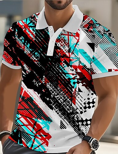 Homme Géométrique Bloc de Couleur Polo Manche Courte Polos Chemises à Col Occasionnel Athleisure Tenue quotidienne Vêtements de rue Impression 3D Boutons Été Arc-en-ciel