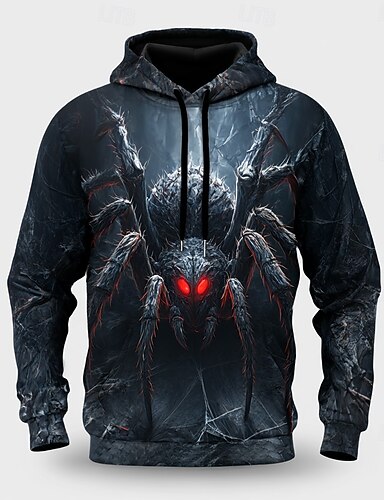 Sweat à Capuche Spider 3D pour Homme Punk Exagéré Col rond Streetwear Noir 1 Noir à Cordons Automne Hiver Designer