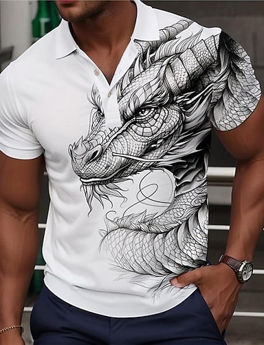 Homme Dragon Polo Chemise de golf Manche Courte Polos Chemises à Col Occasionnel Drôle Vêtements de rue Vêtements de vacances Tenues de fête Boutons Impression 3D Été Vin Vert Gris