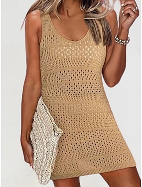 Vêtement de plage maillot de bain femme robe tricotée vacances plage couleur unie col en V sans manches