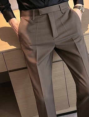 Homme pantalon de costume Pantalon Pantalon de costume Poche Jambe droite Plein Vestimentaire Infroissable Toute la longueur Mariage Entreprise du quotidien Mode basique Noir Gris Clair