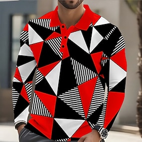 Homme Abstrait Géométrique Polo manche longue Polos Revers Occasionnel Athleisure Tenue quotidienne Impression 3D Boutons Printemps Automne Hiver Rouge Bleu Orange
