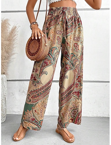 Femmes Jambe large Chinos Vacances Léger Décontracté Quotidien Longueur complète Taille haute Graphique Paisley Confort Non Elastique Vacances Formel Rue Bleu riz blanc Rouge Vert Été Printemps Coupe