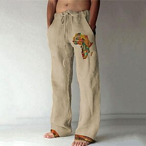 Homme Géométrique Ethique / Africain Pantalons Pantalon décontracté Pantalons Amples Taille Moyenne Vintage Rétro Extérieur Vacances Taille élastique avec cordon de serrage Pantalon en lin avec poches